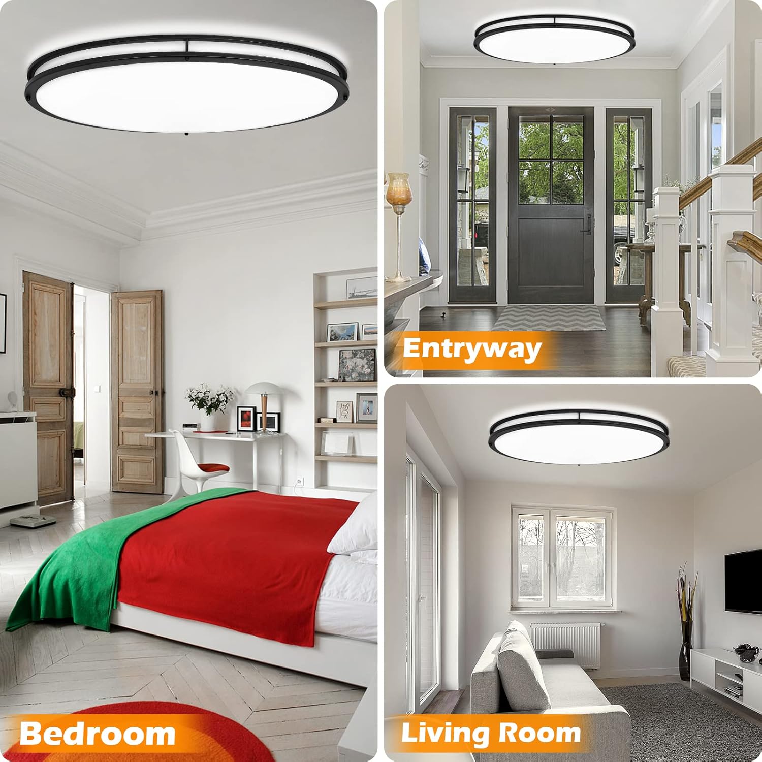 DLLT 65W Dimmable LED Flush Mount Ceiling Light with Remote, 32" Oval Brush Nickel Finish Close to Ceiling Light Fixture for Bedroom/Living Room/Kitchen Lighting, 3CCT Adjustable, Black