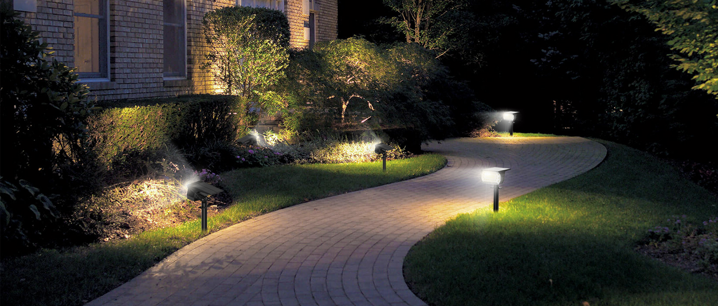 Up to 700 lumens per solar spotlight, bright enough for garden, yard, pathway, pool, garage or other outdoor places, depending on sunlight exposure and selected brightness mode.
