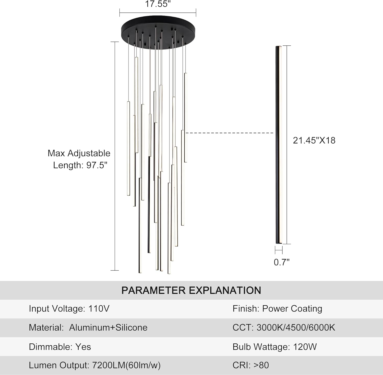 Modern LED Chandelier Clustered Led Pendant Light 18 Lights Dimmable High Ceiling Large Hanging Lighting Fixture for Loft Villa Living Room Stairs Foyer Chandelier,Black