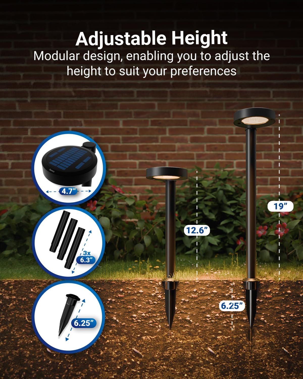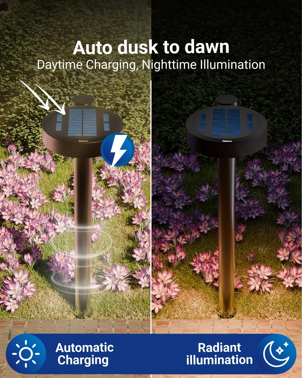 Sunco 6 Pack 2W LED Solar Pathway Walkway Backyard Garden Patio Residential Ambient Decorative Outdoor Light-MD4, 120 Lumens, Selectable CCT 2700K Soft White /4000K Cool White, Dimmable, 3.7V.